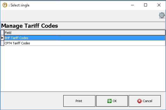 Tariff codes are allocated to procedures or consultations with an amount linked to the code. Tariff codes are normally received from the medical aids with a description and an amount per speciality.