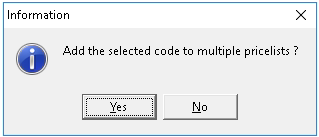 Click on Yes to add the new tariff codes to the price list, the screen will close.