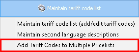 Click on Add Tariff Codes to Multiple Pricelists.