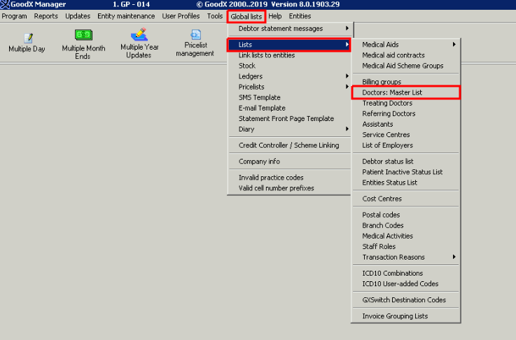 - Click on Global Lists >> Lists >> Doctors: Master List.
