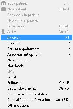 - Right click on the Appointment and select Invoices (F4).