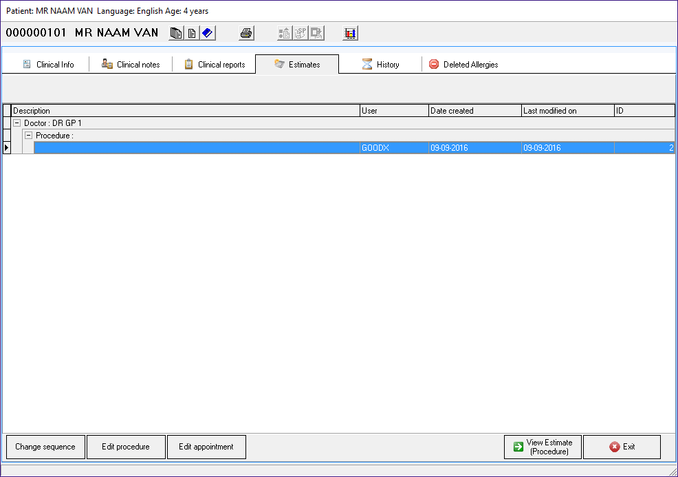 - Click on View Estimate (Procedure)