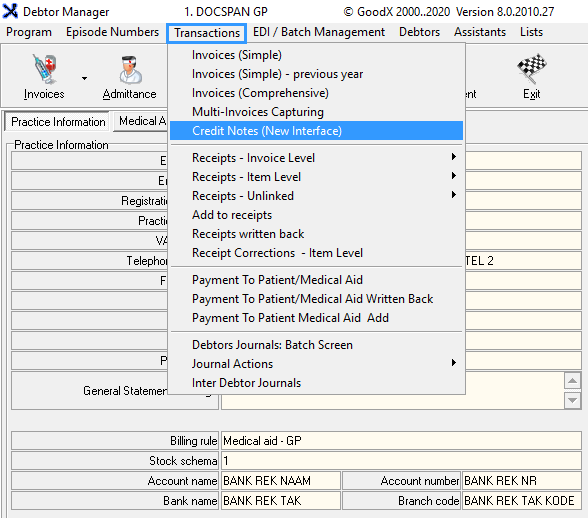 From the Menu Bar Click on Transactions and select Credit Notes (New Interface)