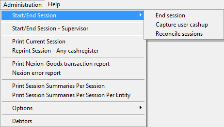 Click on Administration - Start/End Session - Capture user cashup.