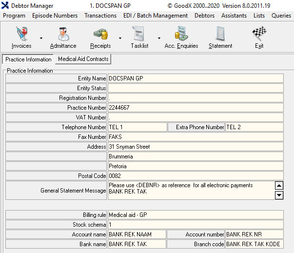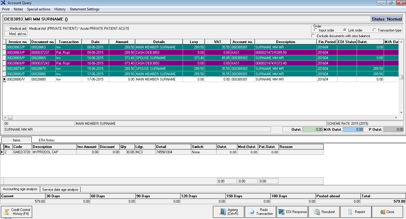Medical Aid Message: The reason messages as received by the medical aid will appearon the statement.