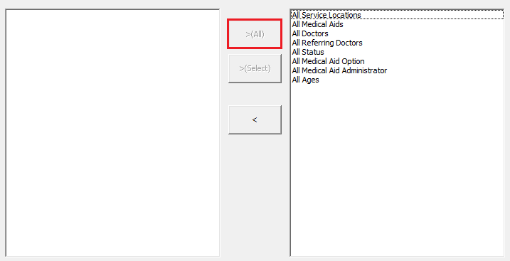 To add all the preferences to the statement, click on the >(All) button, this will move all options to the right panel.