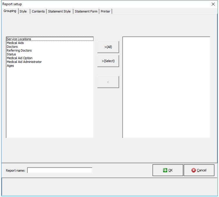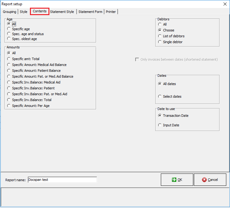 The Report Setup screen will open where it is possible to set up how the statement will appear or act based upon the options that have been selected.