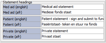 Med aid (afrikaans): An Afrikaans description for the name of a medical aid statement.