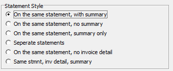 Amounts: What amounts will display on the Statement, only one option can be selected.