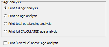 Age: Displays the age of outstanding amounts, only one option can be selected.