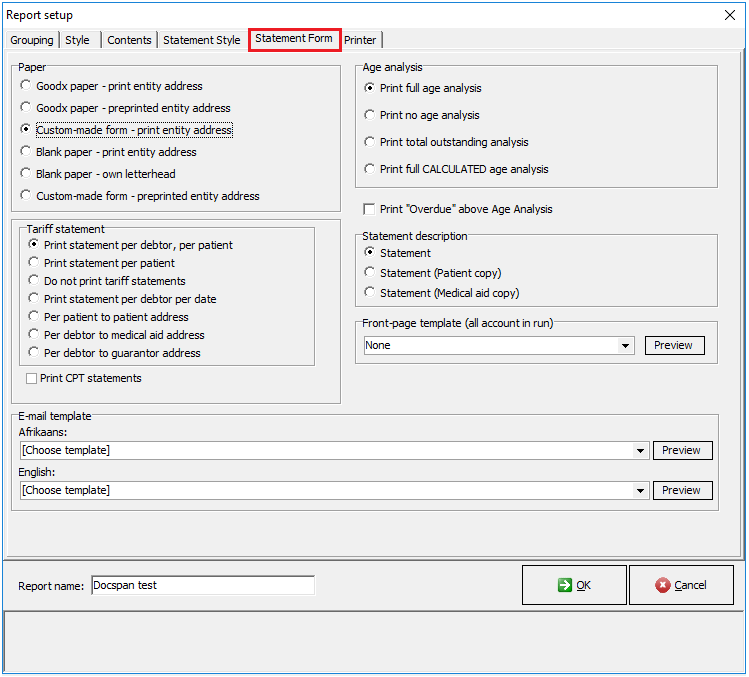 The first three Statement set-ups are for printing purposes, the rest for E-MAIL purposes.