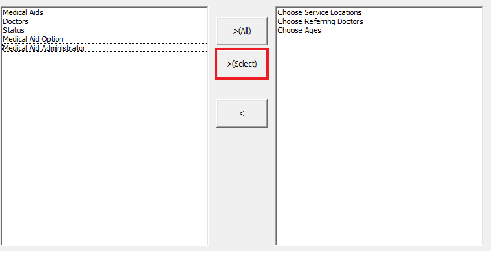 Click on the >(Select) button to add the option to the statement, the preferred option will move from the panel on the left to the panel on the right.