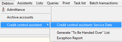 - From the drop-down, select Credit control assistant, click on Credit control assistant: Service Date