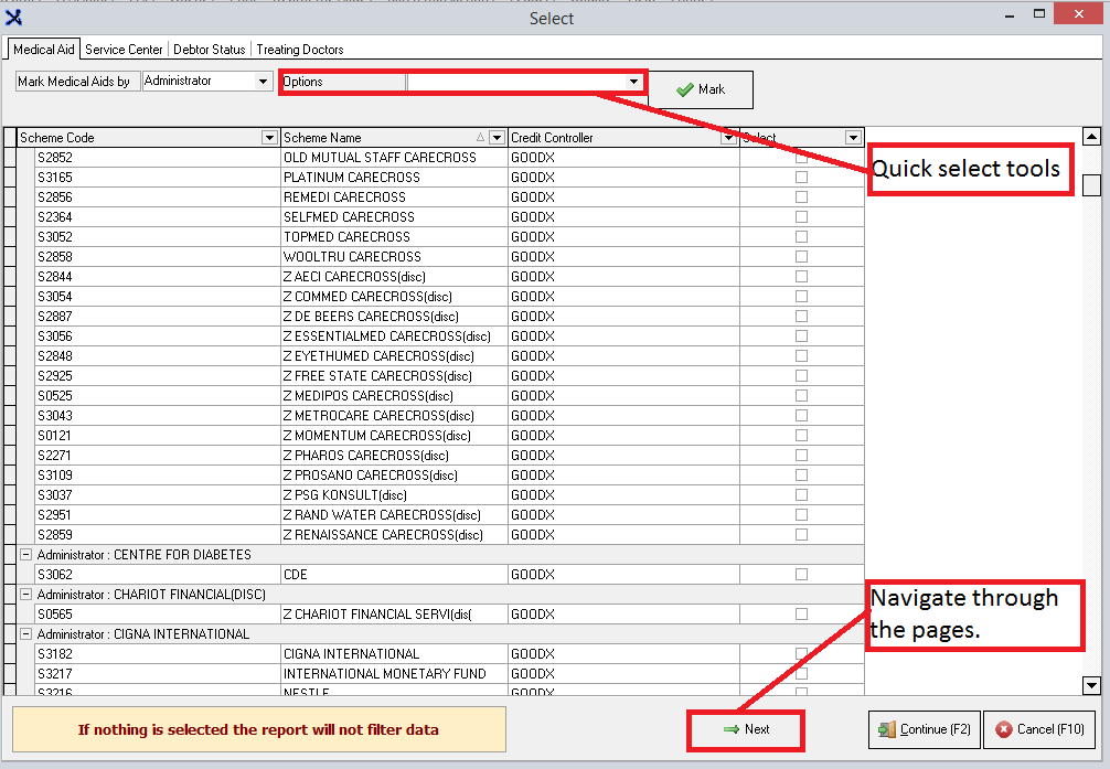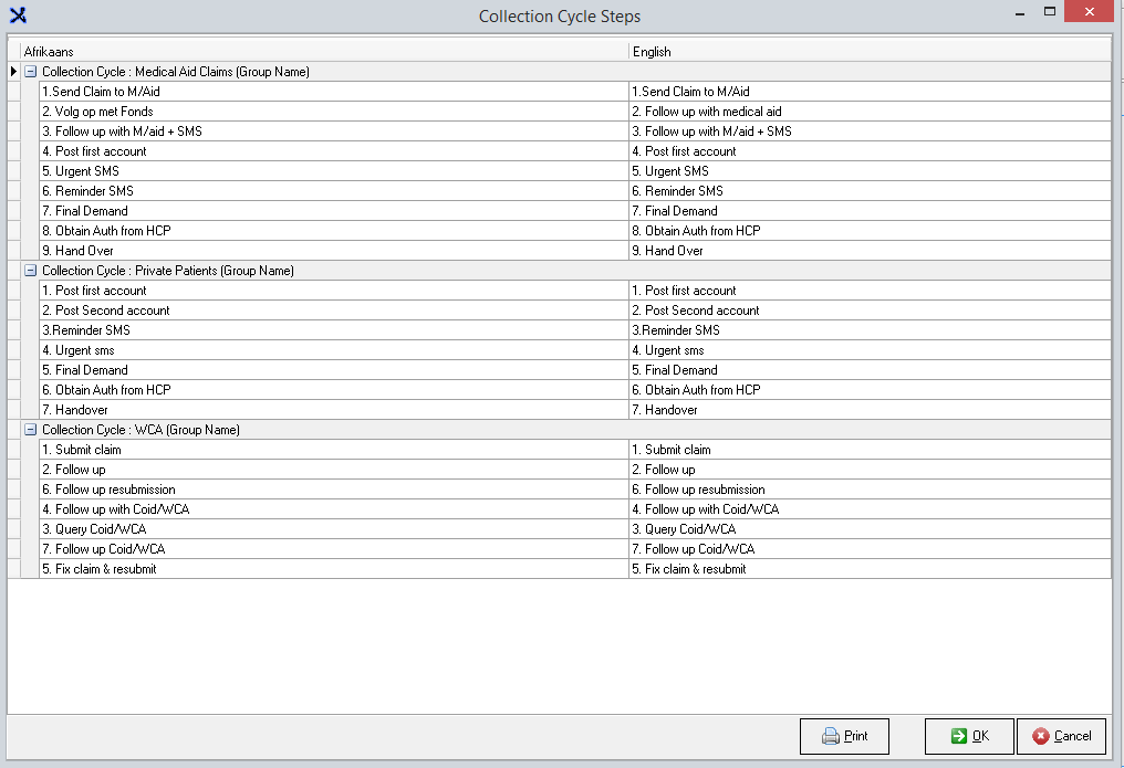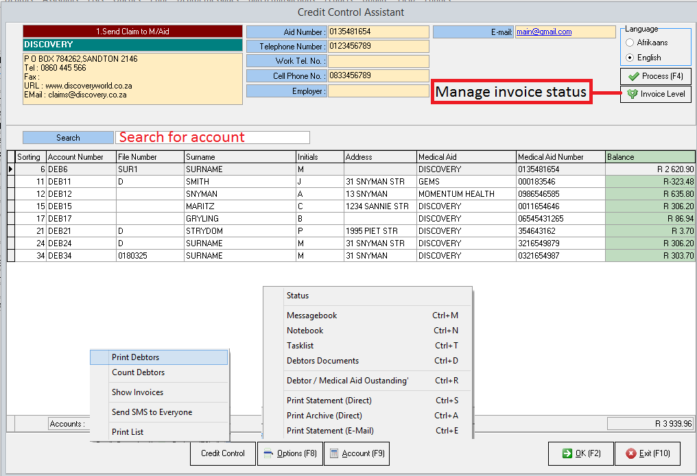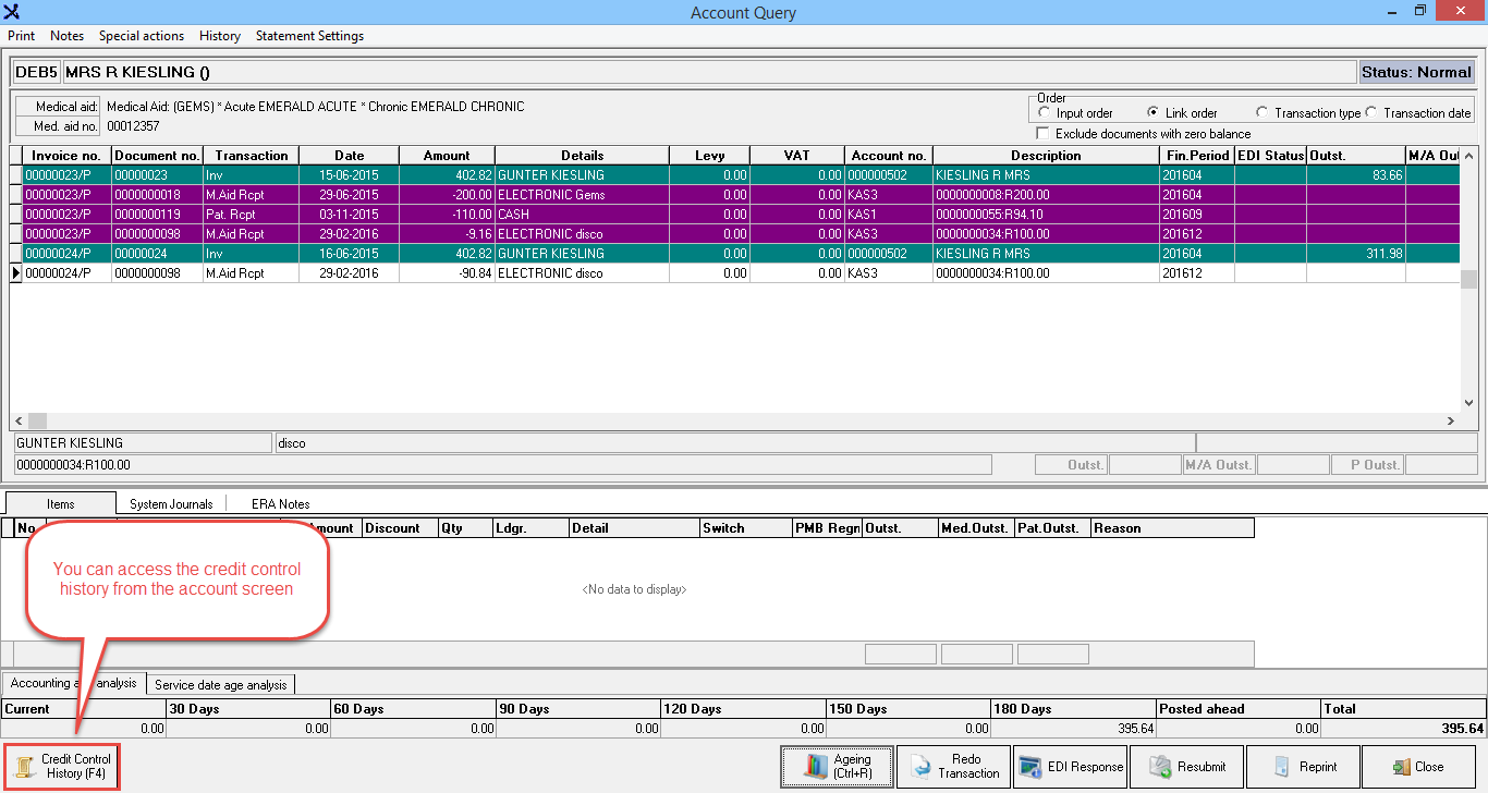 Debtor / Medical Aid Outstanding: Displays Age Analysis of the account.