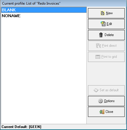 - Click on Close to exit the List of Redo Invoices Profile list.