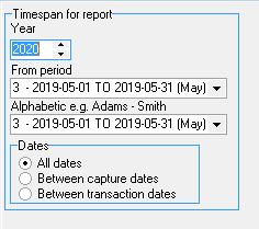 - When the Capture date or Transaction date Options are used the following extra setting will display to put in the date of the last transaction must be included.
