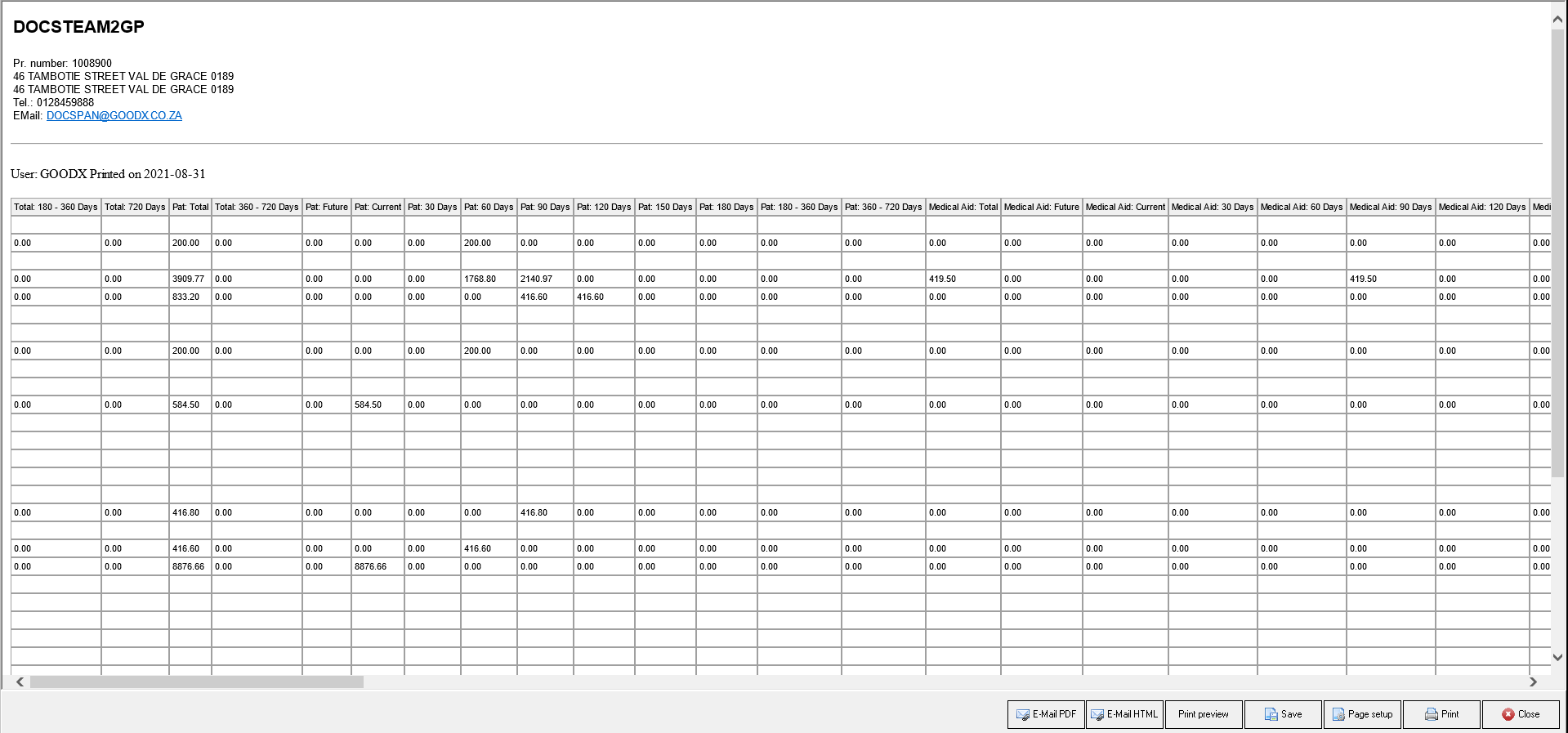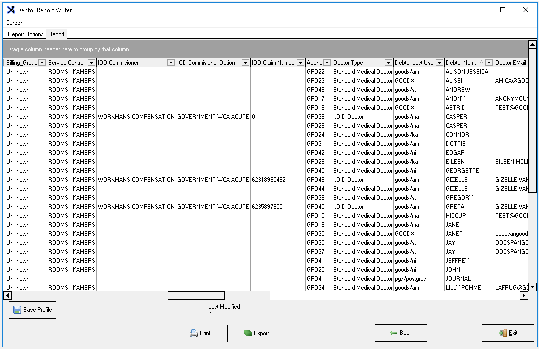 The Debtor Patient report will have E-mail and Print options, for more information regarding these options please refer to the user manual: Options to Print.