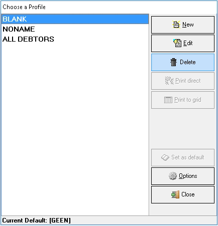 Click on Save Profile once satisfied with the selection criteria that will be used to generate the report. This will be the criteria the report will use by default every time the report is printed in future unless changed.