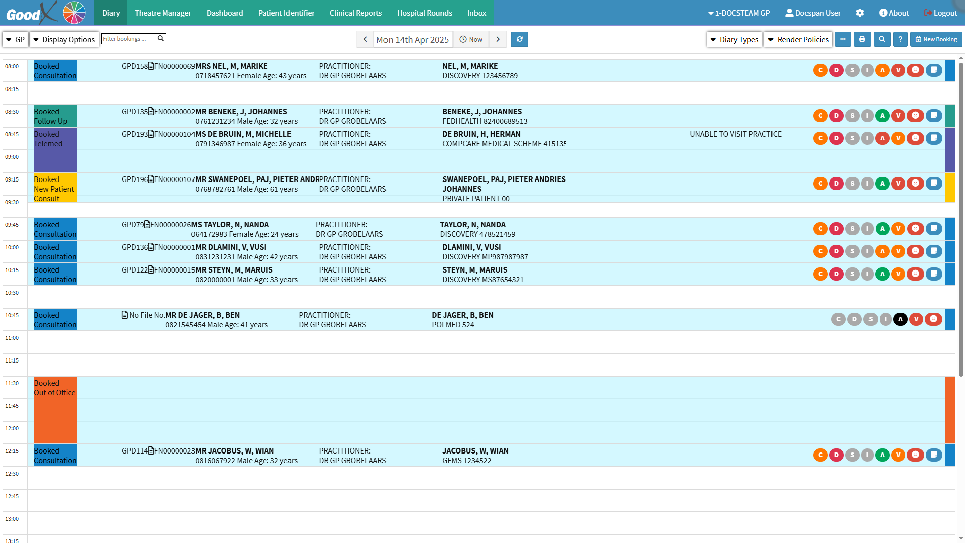 The Multi-day Diary allows you to view multiple days of the appointment schedule at once, enabling more effective time planning for the Practitioner. By providing a broader view of upcoming days, it helps you anticipate peak periods, identify available slots, and prevent overbooking. This enhances your ability to manage the Practice’s time and workflow efficiently, resulting in improved patient flow, better decision-making, and increased overall productivity.