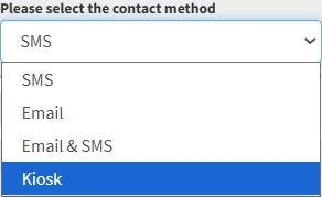 - Kiosk: The form is sent to the Kiosk in the Practice, on which the Patient can complete the form.