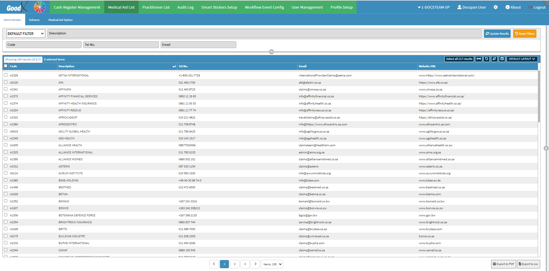 - This user manual will start on the Medical Aid List screen, Administrator tab.