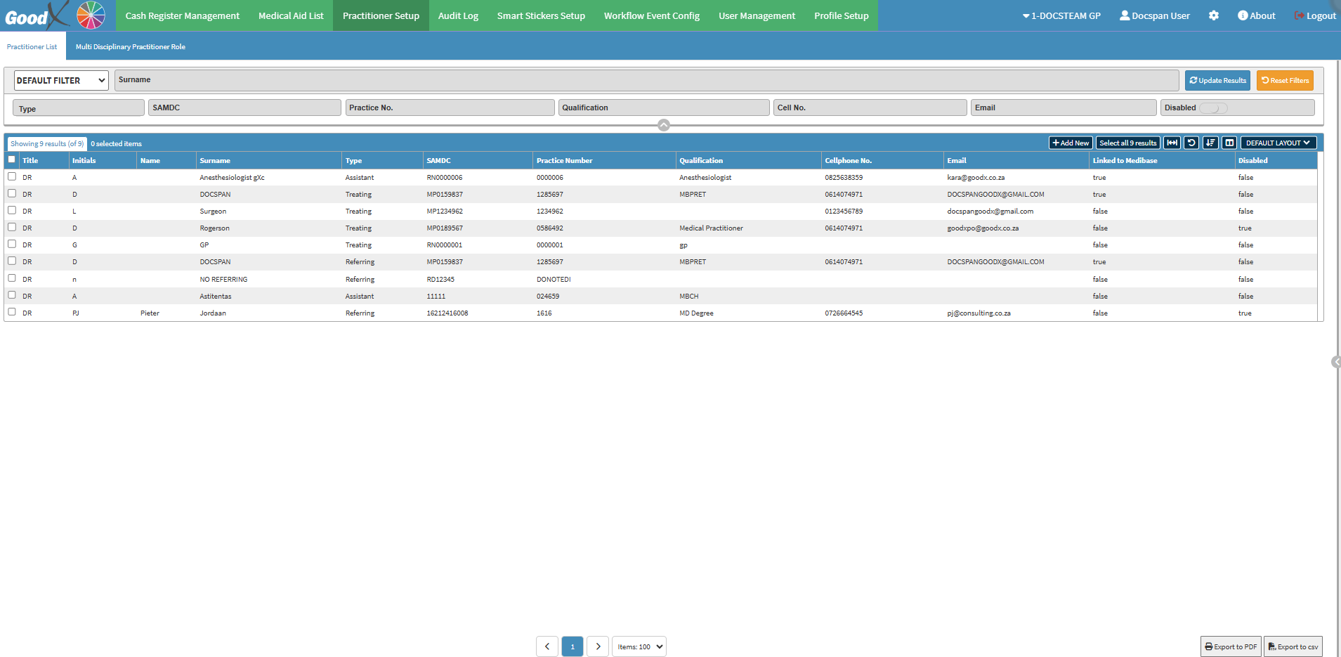 - Click on the Disabled slider a second time to show the Disabled Practitioners.