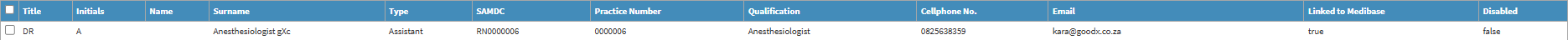 - Linked to MediBase: Indicates if the Practitioner has been linked to MediBase.