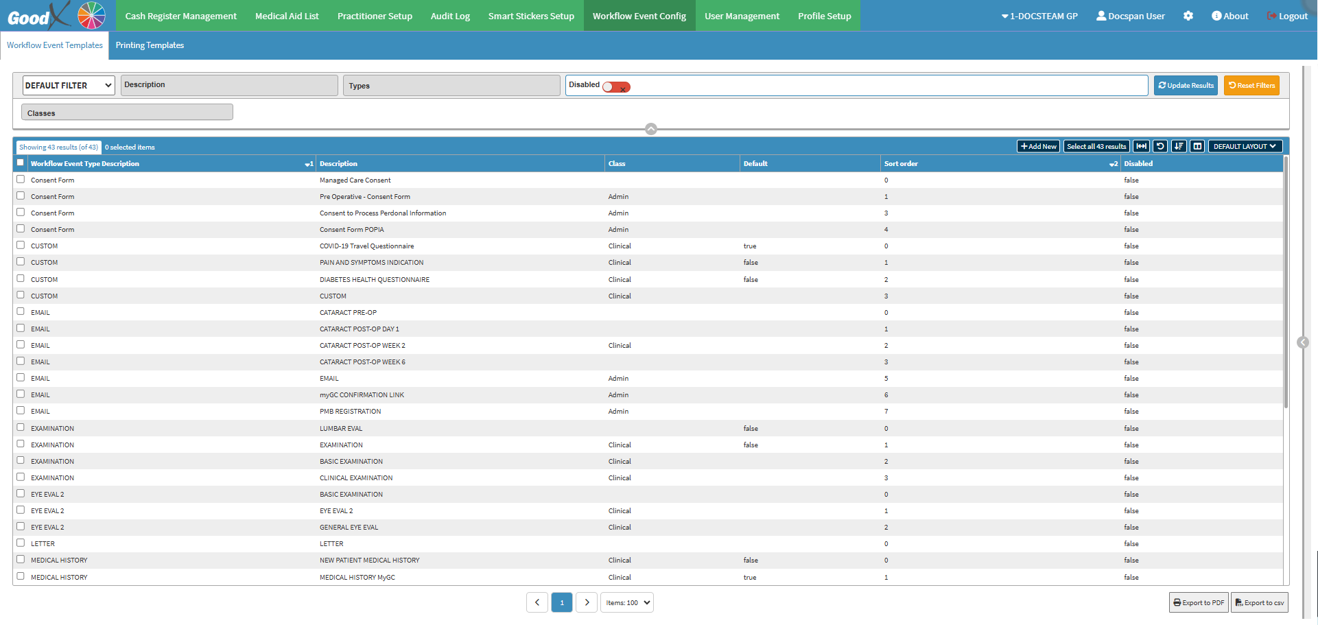 ?Please Note: The Workflow Event Types will depend on the forms loaded for the Practice.