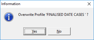 - An Information pop-up will appear to ask whether the user would like to overwrite the current profile.