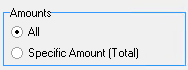 - Specific Amount (Total): The total outstanding account is equal to, greater than, between two amounts or less than a certain amount. When selected, the user will be asked to enter the desired values.