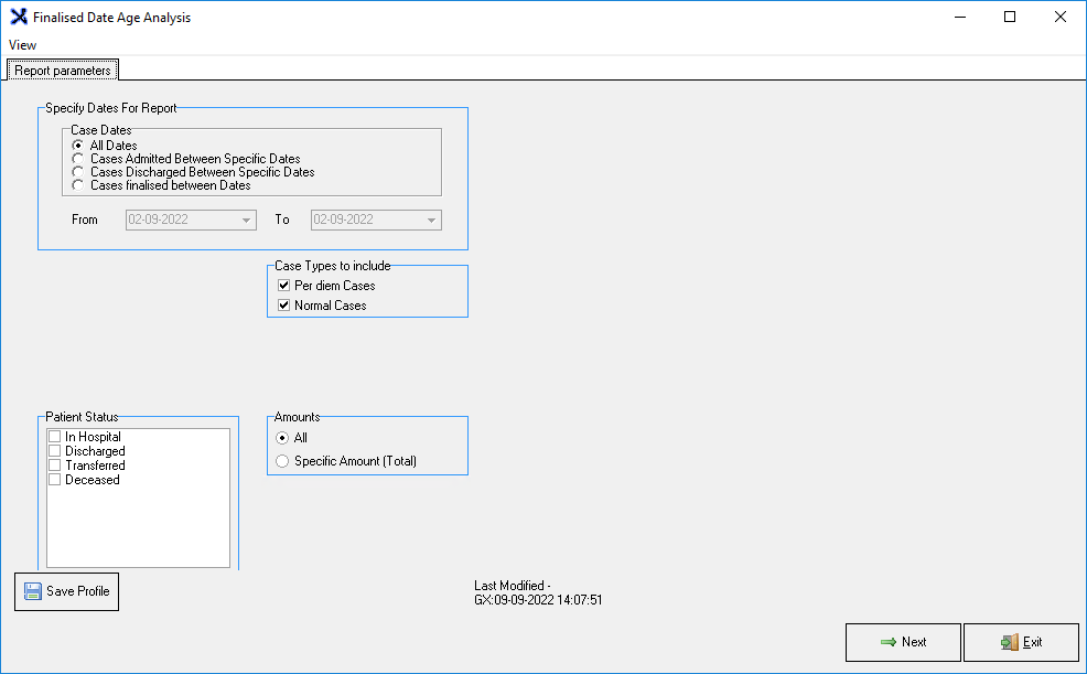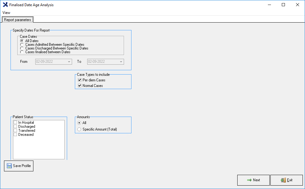 - Click on the Exit button to close the report and return to the Current profile: Finalised Date Age Analysis screen.