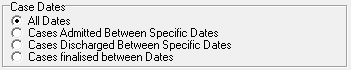 - Specify Dates For Report: The different types of dates relating to the Hospital cases which will be taken into consideration when the report is generated to determine what data will be included in the report.