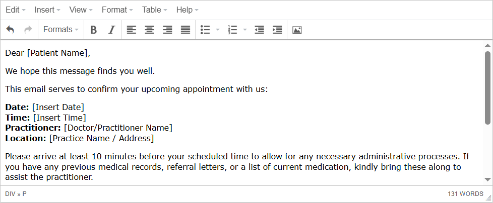 💡Please Note: The To field is filled automatically with the email of the Debtor in the Debtor’s file, and you can also select a Practitioner from the Medibase as the recipient of the email.