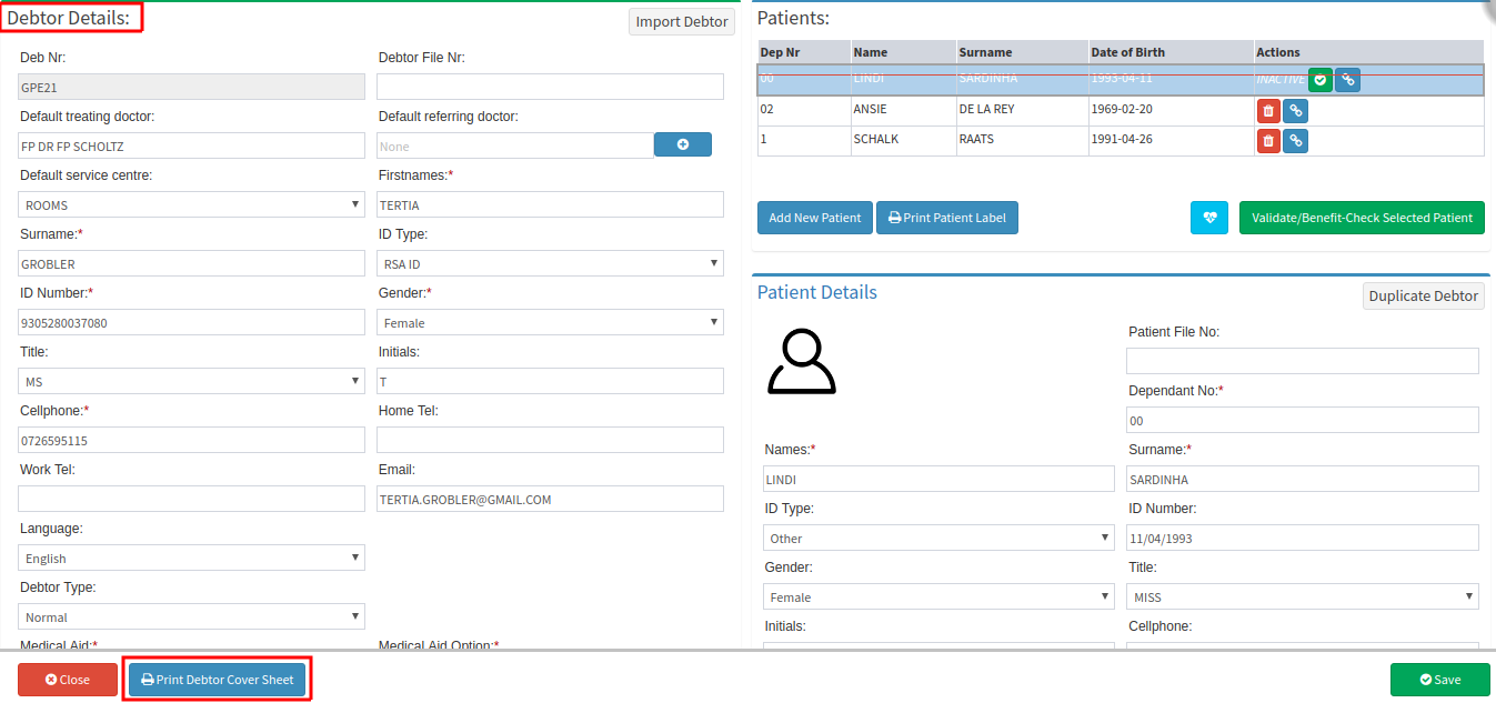 The File Cover Sheet function is useful if the Practice still uses Files. You can Print it out for each file and it will have all the important details of the Debtor and Patient on it.