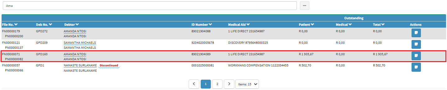 - Click on the desired Debtor.