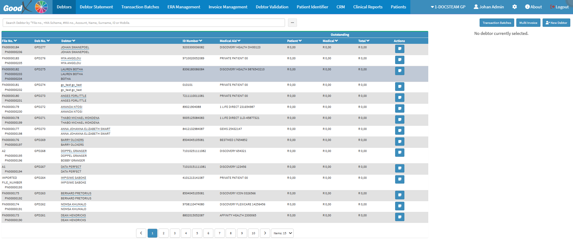 - This user manual will start on the Debtors screen.