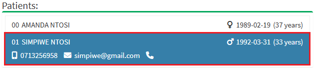 - Click on the desired Patient.