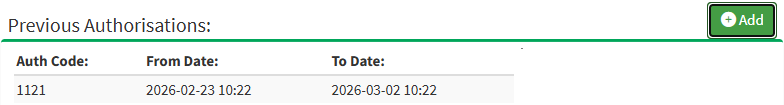 - Click on the Add button to add a new Authorisation to the selected Patient.