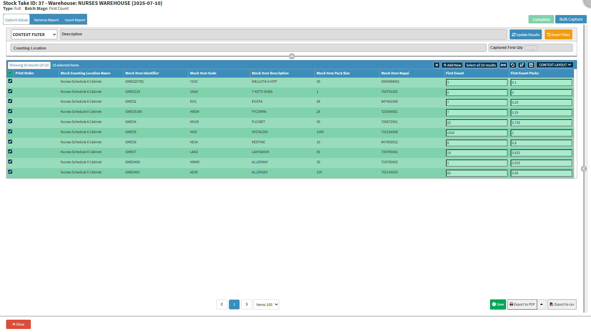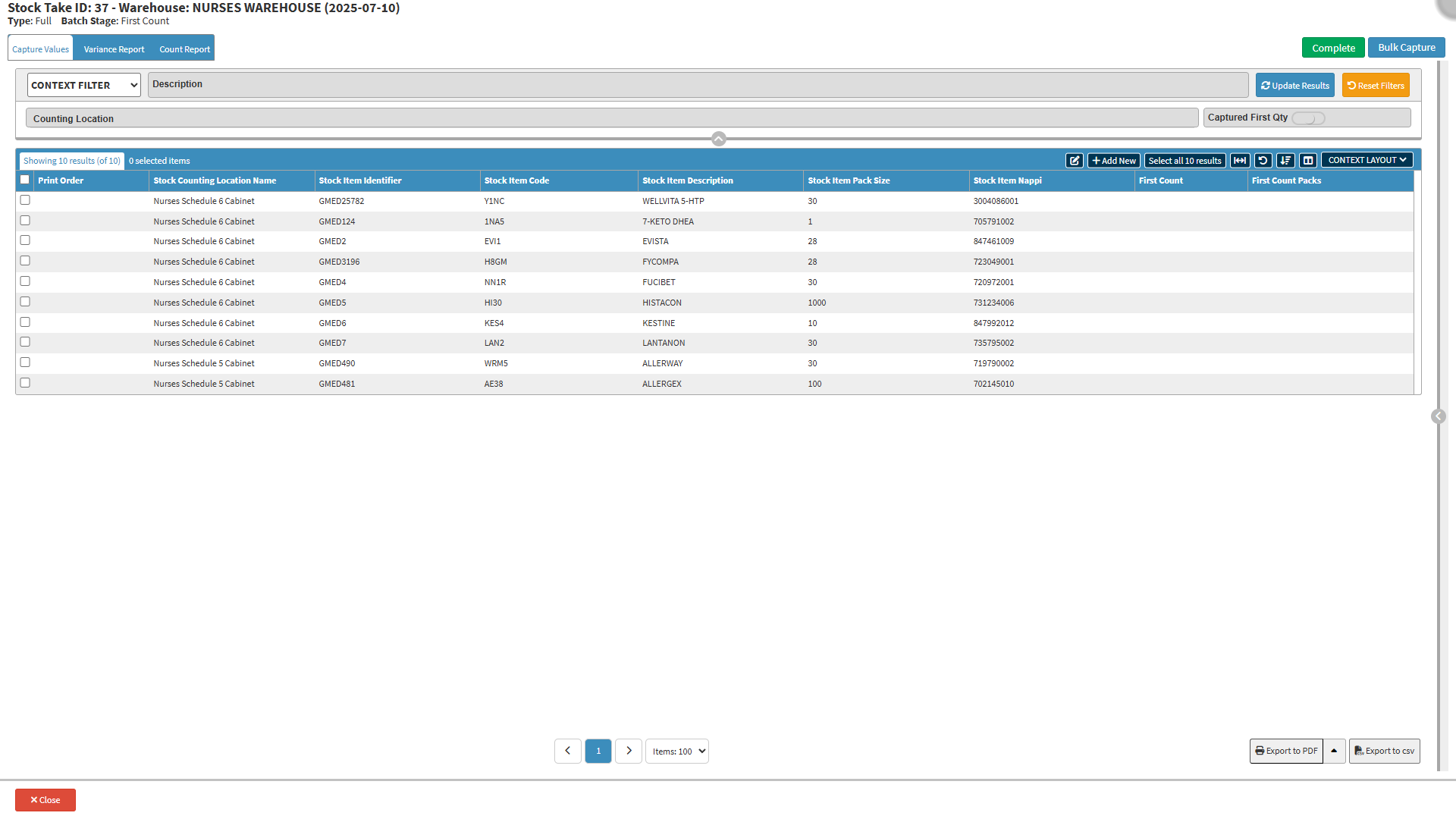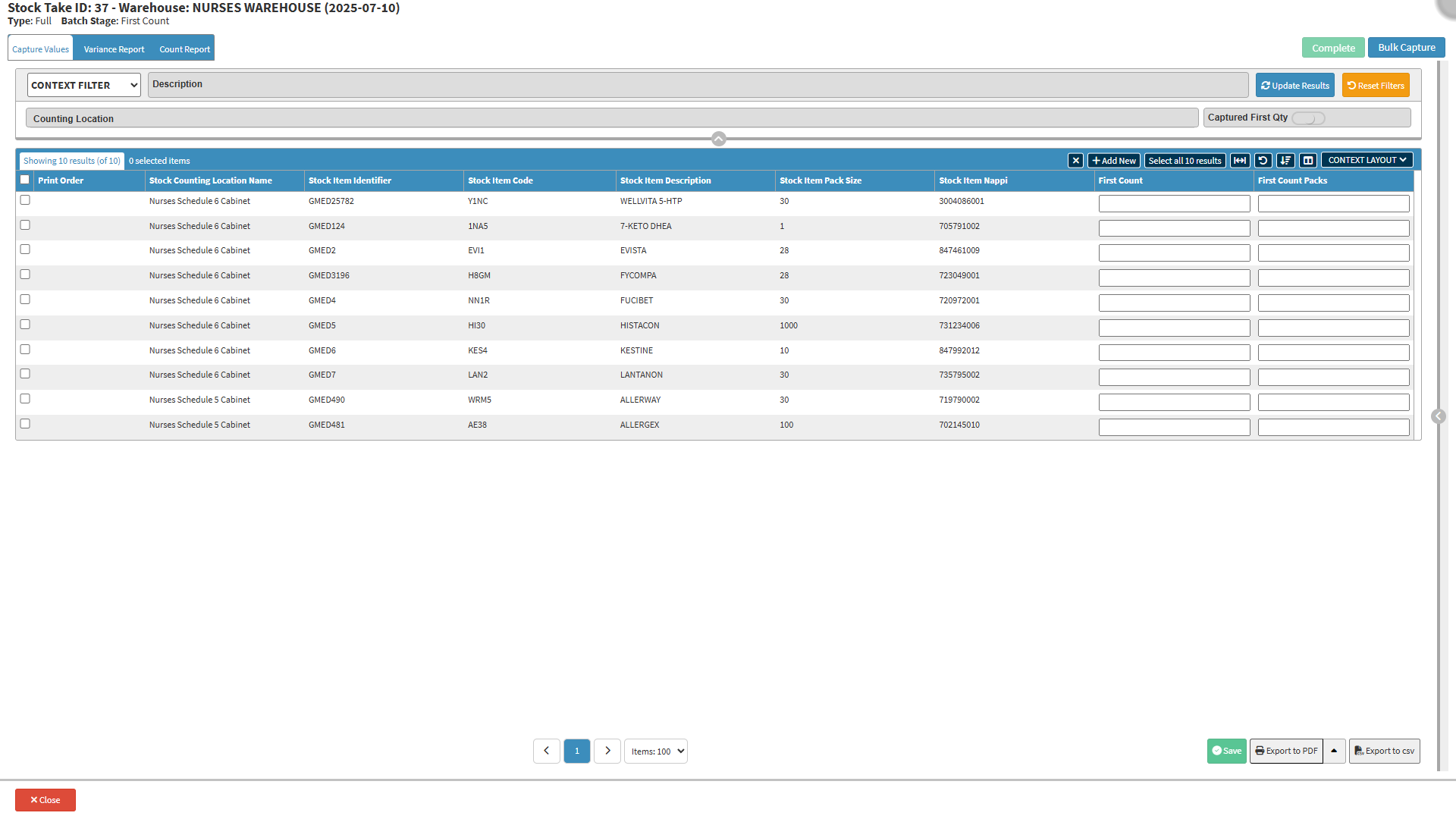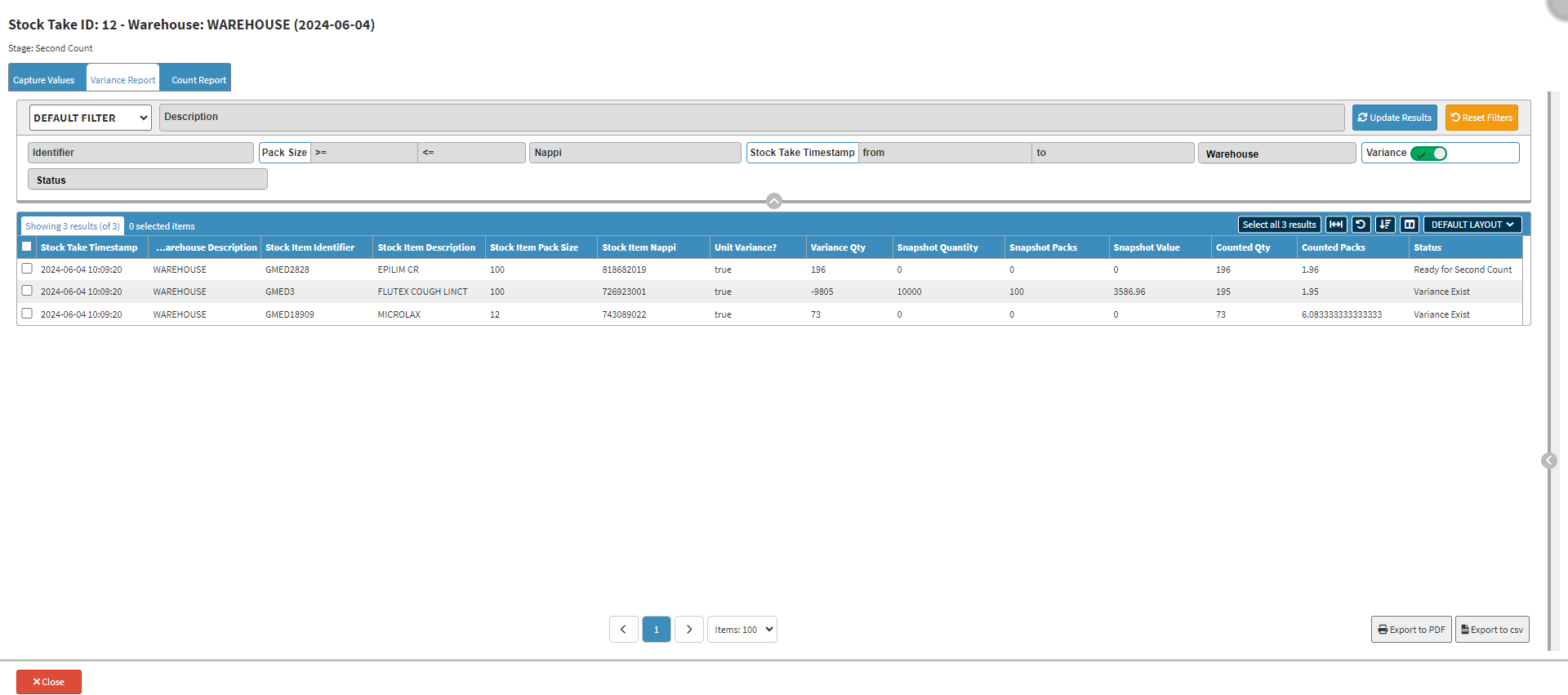 - After Completing the Second Count stage, navigate to the Variance Report tab to view a Report of the stock that has been counted.