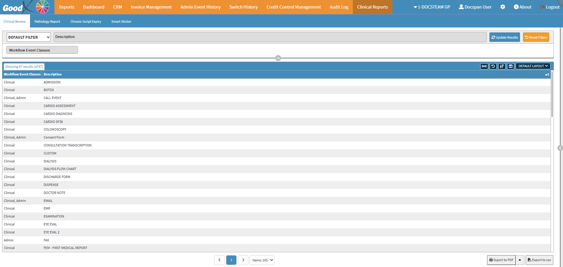 - For more information on how to navigate to the Clinical Reports tab, please refer to the user manual: Reports Segment.