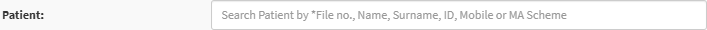 - Click on the Search Patient by File no., Name, Surname, ID, Mobile or MA Scheme to enter the details of the Patient, whose Pathology Request/Results you are searching for.