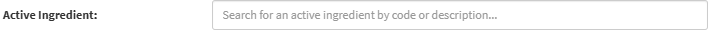 - Click on the Active Ingredients field to enter the details of the Test you want to search for using the Test Code or Description.