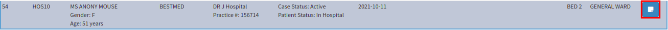 - NOTE: Allows the user to create a short text note regarding the hospital case.
