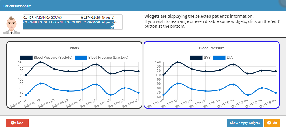 - For more information on how to Edit the Patient Dashboard, please refer to the user manual: Edit The Patient Dashboard.