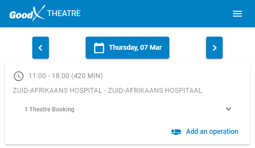 - The Theatre List drop-down menu will open, indicating the Operations scheduled for that specific day.