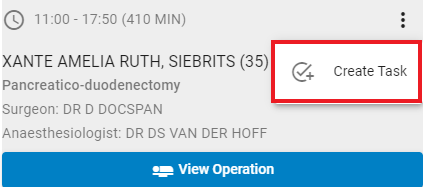 A Task is an assignment that is allocated to a specific person, who will need to perform certain actions in order to get a specific job done. Creating Tasks helps delegate responsibilities across the Practice. Generating Tasks from the Operation Booking provides a convenient way to create Tasks in real-time, specifically tailored to the ongoing Operation, ensuring efficient Task Management during the procedure.