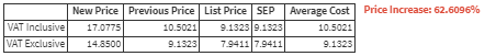 - Price Increase: When the New Price of the Product is higher than the original price or previous price when the same item was purchased, a red notice will appear advising that the Price increased by a certain percentage.