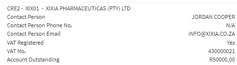 - Creditor's Name (XIXIA PHARMACEUTICALS (PTY) LTD: The Name of the Creditor when it was created.
