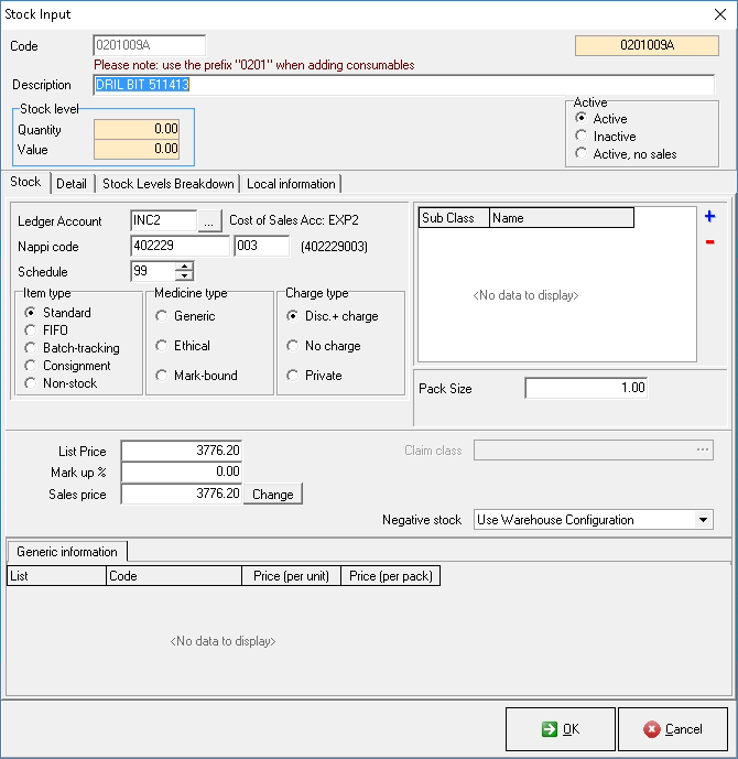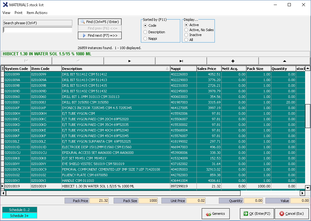 Please note:When using IQest or Medprax, depending on whom the practice is registered, they will need to be contacted to edit an Item. IQest or Medprax will contact the supplier to get the correct information. IQest or Medprax will correct the item on their file and send the new file with the item as requested. Please remember if an item is not on the Stock file and the user creates their own item, this item will not be updated and it will stay their responsibility to update the information manually.