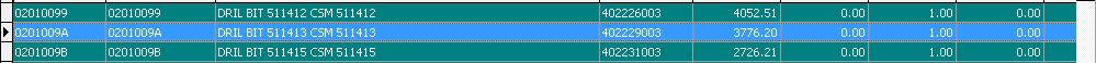 The Materials stock list will open (this depends on the selection that was made on in the Category screen).